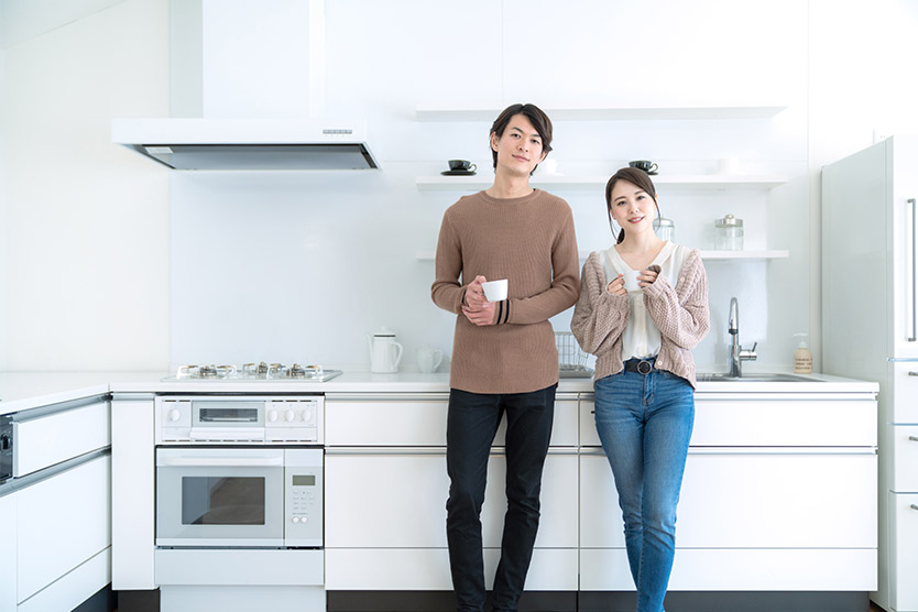 どんな間取りが自分たちに適しているのか、大和ハウスの「間取り検索」で探せる多数の事例をもとに、「ワークトライアングルが実現できる間取りは?」「冷蔵庫の扉の前はどれくらいの空間が必要?」「キッチンからの生活動線は?」などを意識して、理想のキッチンスタイルを考えてみませんか。